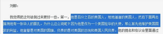 骆家辉在美国出生成长,曾表示自己是百分之百的美国人,对美国的认可度更高。