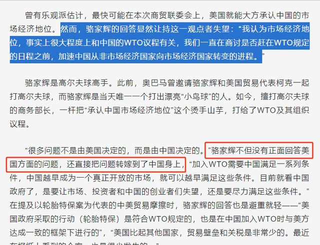 骆家辉担任州长期间大力推动中美贸易来往,2009年他开始担任美国商务部长,对华态度随之发生改变,在贸易政策上给中国“打太极”。